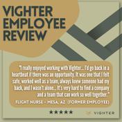 Since the company's founding in 2005, Vighter's number one focus has been our health care providers and the patients they care for. With our team's variety of first-hand experience in medicine, nursing, and allied health, we know the obstacles you face on a daily basis and we are invested in making your time with us the absolute best it can be. With Vighter, you are more than just a number, you're a valued member of a dedicated team intent on improving patient care, hospital and clinic performance, and the overall health care professional experience. We like to keep things simple, what you see is what you get; our team will offer you our highest possible compensation packages we can for the assignments you desire most. Contact our recruiters to join Team Vighter today, and together we can make a positive impact on all aspects of healthcare!
